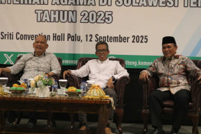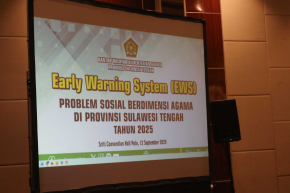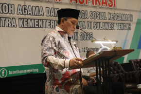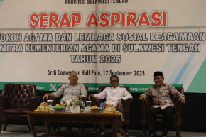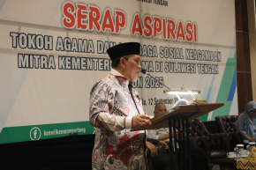 Plt. Kakanwil Kemenag Sulteng Muchlis, membuka secara resmi kegiatan Serap Aspirasi Tokoh Agama dan Lembaga Sosial Keagamaan serta EWS Problem Sosial berdimensi agama di Hotel Sriti Palu (12/9/2025).