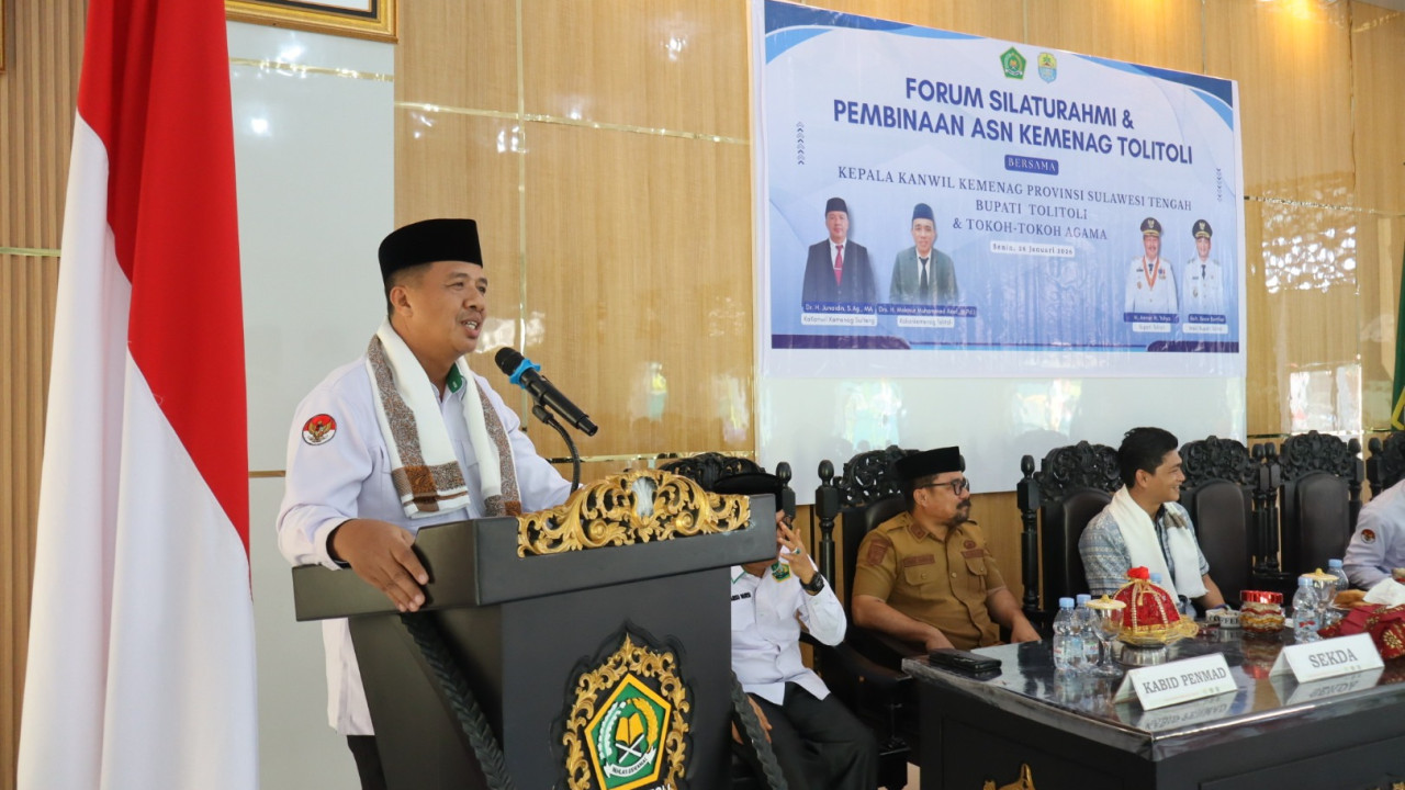 Tolitoli (Kemenag Sulteng) - Aparatur Sipil Negara (ASN) Kementerian Agama (Kemenag) Kabupaten Tolitoli didorong menghadirkan layanan yang inklusif kepada masyarakat. Pesan tersebut disampaikan Kepala Kantor Wilayah (Kakanwil) Kemenag Sulteng, Junaidin, dalam Forum Silaturahmi dan Pembinaan ASN Kemenag Tolitoli yang digelar di Aula MAN Tolitoli, Senin (26/1/2026), sekaligus menjadi kunjungan perdana Kakanwil ke daerah tersebut sejak dilantik oleh Menteri Agama pada 30 Desember 2025.