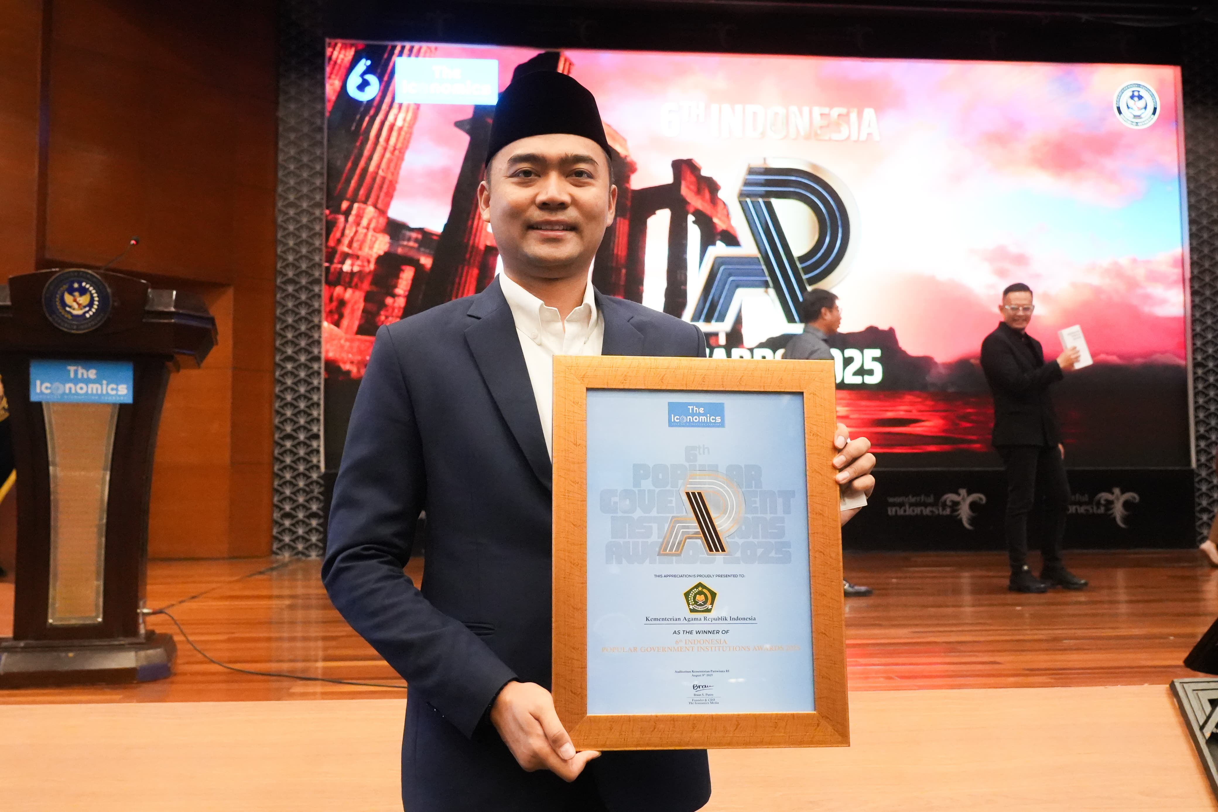 Kementerian Agama menerima penghargaan Popular Government Institutions Award 2025 dari The Iconomics Media. Penghargaan ini diserahkan pada puncak acara Indonesia Public Relations Summit 2025 yang mengangkat tema Collaboration for Reputation, di Auditorium Kementerian Pariwisata, Jakarta, Jumat (8/8/2025).