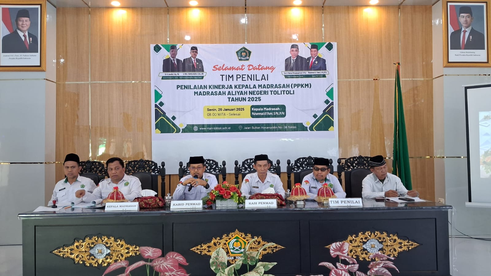 MAN Tolitoli (Kemenag Sulteng) – Evaluasi kinerja kepemimpinan empat tahunan Kepala Madrasah Aliyah Negeri (MAN) Tolitoli dilaksanakan melalui Penilaian Kinerja Kepala Madrasah (PKKM) oleh Kantor Wilayah (Kanwil) Kementerian Agama (Kemenag) Sulteng. Kegiatan ini berlangsung di Aula MAN Tolitoli, Senin (26/1/2026), usai forum silaturahmi dan pembinaan ASN Kemenag Tolitoli bersama Bupati Tolitoli dan tokoh agama.