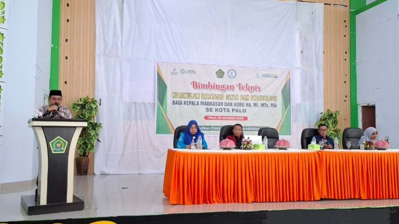 Palu (Kemenag Sulteng) - Dalam upaya mewujudkan pendidikan madrasah yang ramah, penuh kasih, dan peduli terhadap lingkungan, Kantor Wilayah Kementerian Agama Provinsi Sulawesi Tengah menggelar Bimbingan Teknis (Bimtek) Kurikulum Berbasis Cinta dan Ekoteologi (KBC) di Aula MAN Insan Cendekia (MAN IC) Kota Palu, Kamis (30/10/2025).