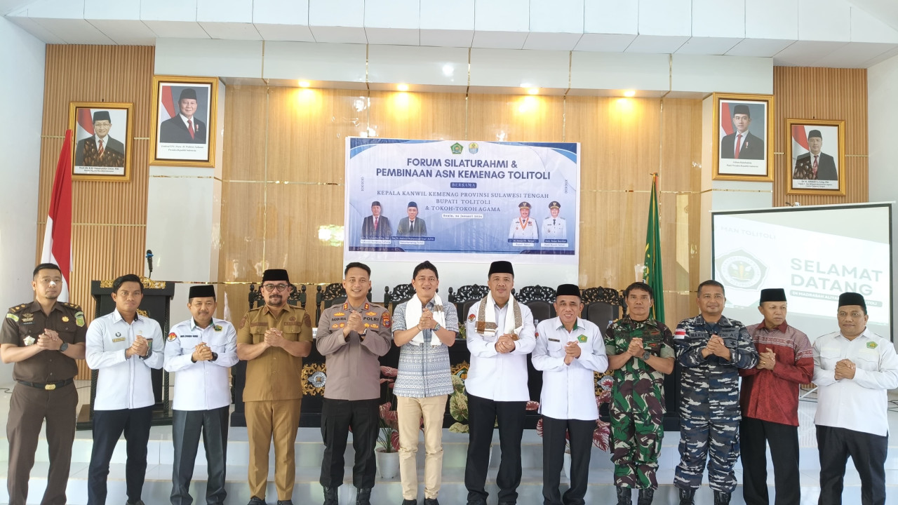 Tolitoli (Kemenag Sulteng) - Kantor Kementerian Agama (Kemenag) Kabupaten Tolitoli menggelar Forum Silaturahmi dan Pembinaan Aparatur Sipil Negara (ASN) di Aula Madrasah Aliyah Negeri (MAN) Tolitoli, Senin (26/1/2026). Kegiatan yang diikuti seluruh ASN Kemenag Tolitoli ini menjadi ajang konsolidasi internal sekaligus forum silaturahmi perdana Kepala Kantor Wilayah (Kakanwil) Kemenag Sulteng, Junaidin, dengan jajaran ASN Kemenag Tolitoli usai dilantik.