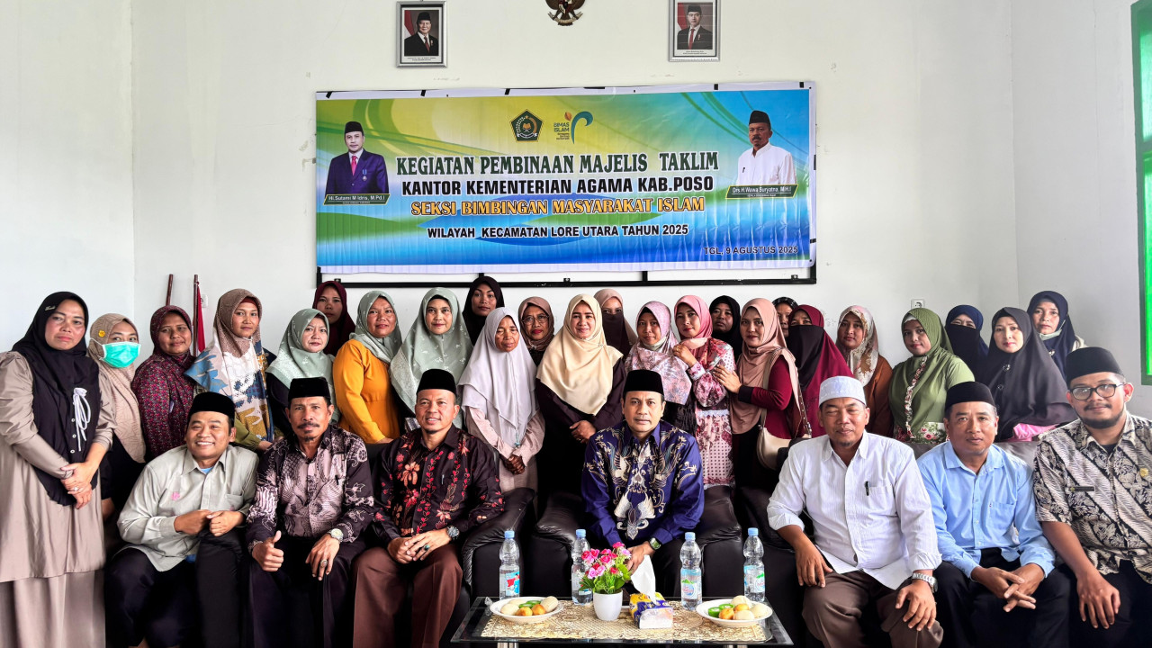 Poso (Kemenag Sulteng) - Kementerian Agama (Kemenag) Kabupaten Poso terus memperkuat peran majelis taklim sebagai pusat pembelajaran agama, penguatan ukhuwah, dan penyebaran nilai-nilai kebaikan di tengah masyarakat. Komitmen ini diwujudkan melalui kegiatan Penguatan Majelis Taklim di Kecamatan Lore Utara dan Lore Timur yang digelar pada Sabtu (9/8/2025), diikuti sekitar 70 jemaah majelis taklim.