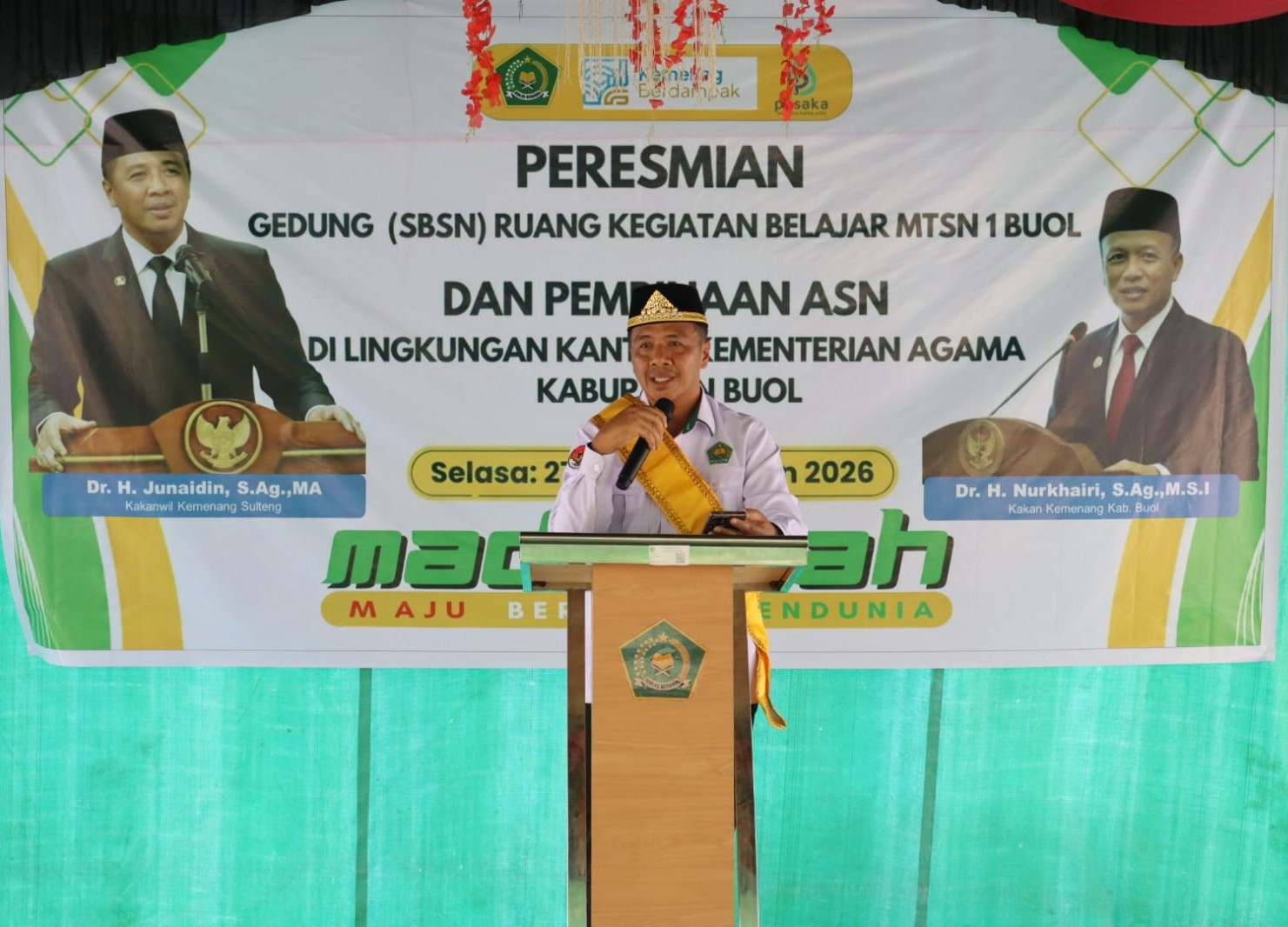 Gedung RKB SBSN tersebut diresmikan oleh Kepala Kantor Wilayah (Kakanwil) Kementerian Agama (Kemenag) Provinsi Sulawesi Tengah, Junaidin, bertempat di lingkungan MTsN 1 Kabupaten Buol. Selasa, (27/01/2026)