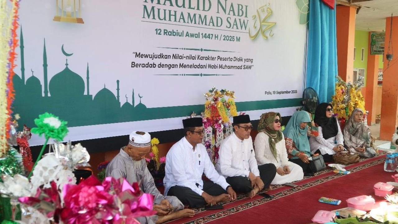 MTs Negeri 2 Kota Palu (Humas) MTs Negeri 2 Kota Palu menggelar Peringatan Maulid Nabi Muhammad SAW 1447 H dengan penuh khidmat dan meriah yang berlangsung di panggung utama dengan dihadiri langsung oleh para pejabat dan guru MTs Negeri 2 Kota Palu yang digelar pada hari Jumat, (19/09/2025). Hadir dalam kegiatan tersebut antara lain Kasi Pendis Kemenag Kota Palu H. Irsan, S.Ag., M.Pd.I, Ketua Pokjawas Kemenag Kota Palu Alfian, S.Pd, Pengawas Pembina Hj. Riskayati Latief, S.Pd., M.Pd, Pengawas Madrasah Soim Anwar, S.Pd., M.Pd dan ibu Nurhayati Nadra Laihi, S.Pd., M.Pd, Ketua Komite MTs Negeri 2 Kota Palu Ir. H. Ramli Baharuddin, Kepala Madrasah Hj. Munira, S.Ag, Kaur TU Drs. Ardin serta seluruh guru dan staff MTsN 2 Kota Palu.