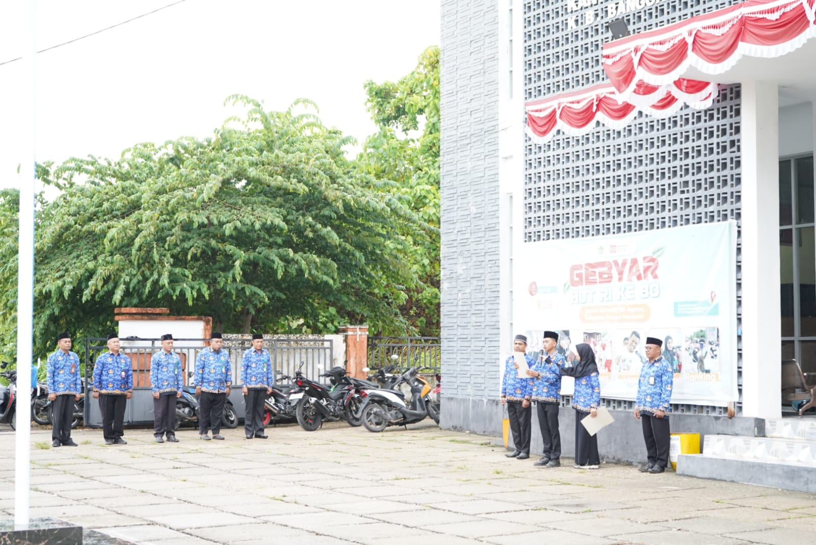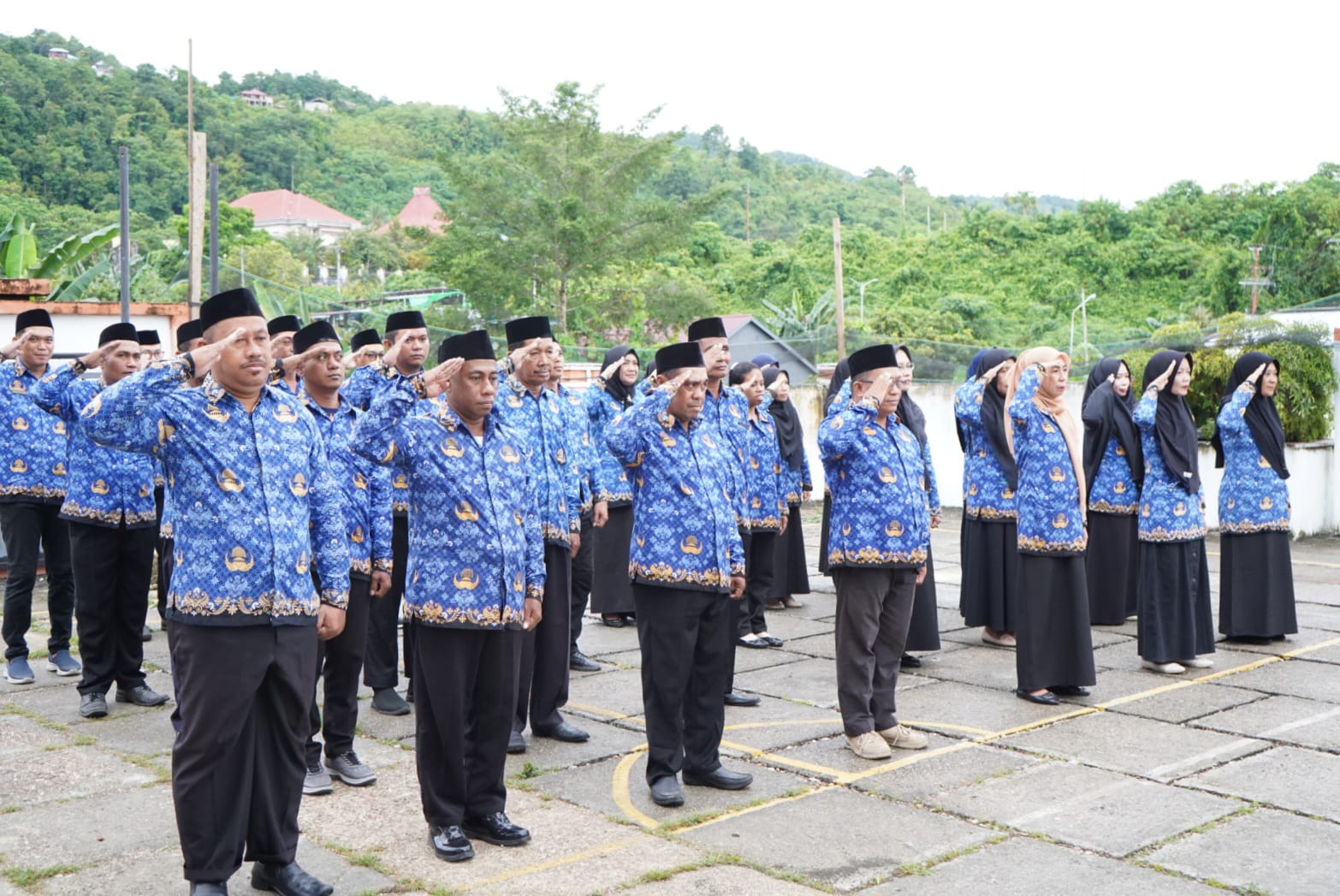 Seluruh pejabat dan Aparatur Sipil Negara (ASN) di lingkungan Kantor Kemenag Banggai Kepulauan hadir dan mengikuti upacara dengan penuh rasa hormat dan nasionalisme.