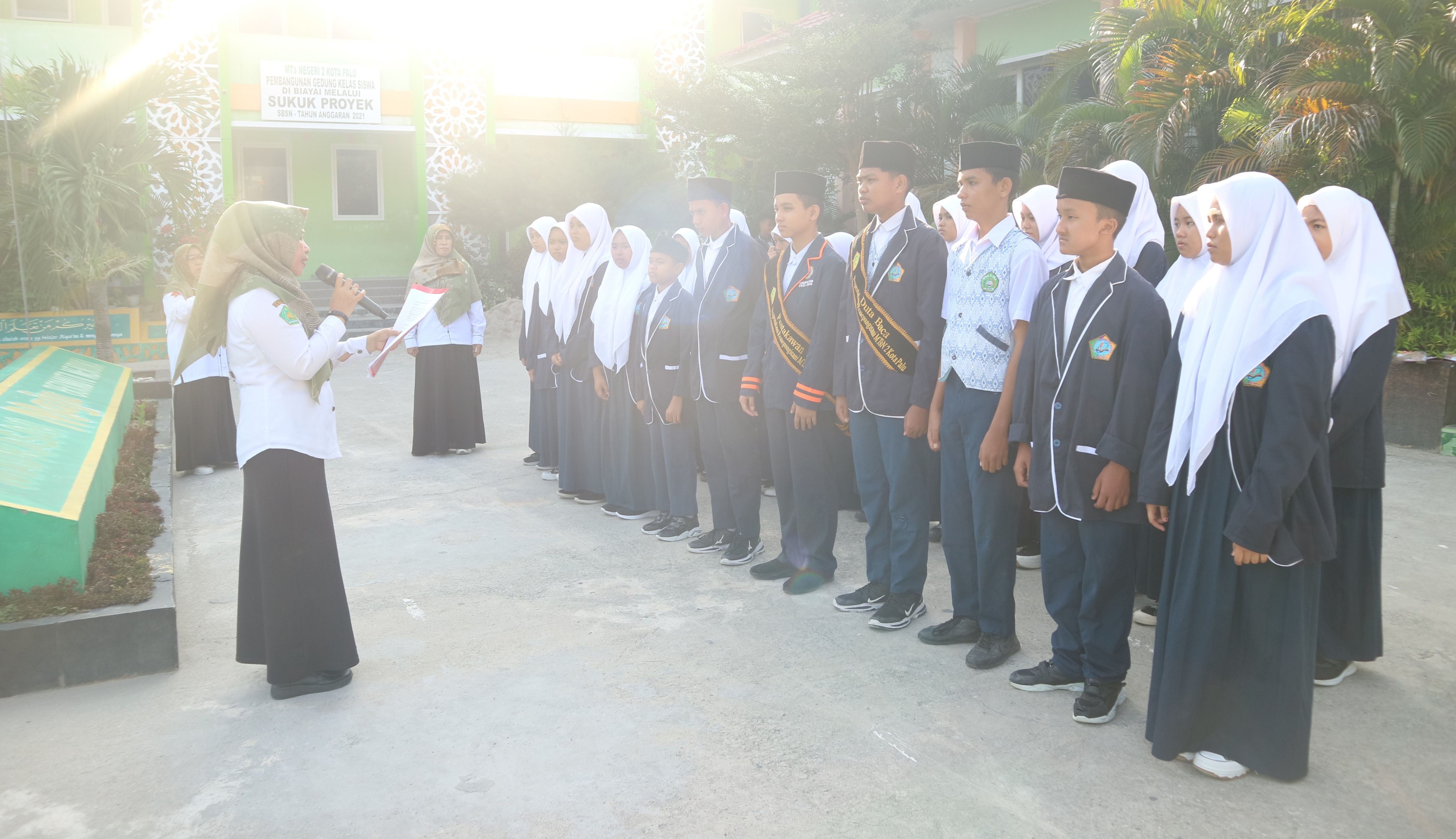 MTs Negeri 2 Kota Palu (Humas) Kepala MTsN 2 Kota Palu, Hj. Munira, S.Ag, secara resmi mengukuhkan dan mengambil sumpah 25 Pengurus Sahabat Pustaka Perpustakaan Remepangisani MTsN 2 Kota Palu Tahun Ajaran 2025/2026. Kegiatan ini dilaksanakan pada Senin (26/01/2026) di Halaman Kantor MTsN 2 Kota Palu dan berlangsung dengan lancar serta khidmat.