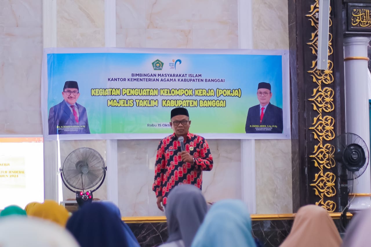 Di hadapan 80 perwakilan majelis taklim Kepala Kantor Kemenag Kabupaten Banggai, Drs. H. Suardi Kandjai, M.Pd mengajak seluruh majelis taklim untuk berperan aktif mendukung program Pemerintah Daerah 'Banggai Mengaji'. Ia juga mengingatkan pentingnya ketahanan keluarga sebagai dasar pembentukan karakter anak.