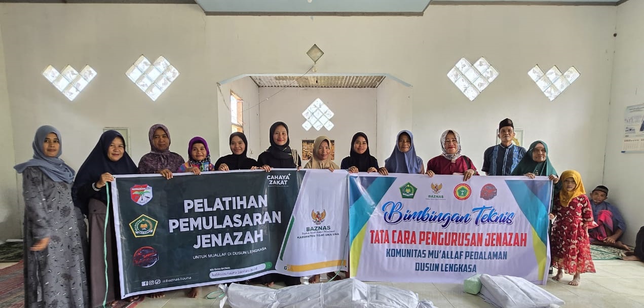 Ampana (Kemenag_Sulteng) – Dalam rangka memberikan pemahaman bagaimana prosedur tata cara pemulasaran atau perawatan jenazah sesuai dengan tuntunan syariat Islam, Kantor Urusan Agama Kec. Ulubongka berkerjasama dengan Baznas Tojo Una Una dan Pemerintah Desa Uematopa Dusun Lengkasa Kec. Ulubongka menyelenggarakan Bimbingan Tekhnis Tata Cara Pemulasaran/Pengurusan Jenazah. Kegiatan dilaksanakan di Masjid Dusun Lengkasa, dengan diikuti oleh peserta yang merupakan perwakilan dari berbagai unsur masyarakat se-Desa Uematopa Dusun Lengkasa, termasuk tokoh agama, perangkat RT/RW, kader PKK, Komunitas Mua’alaf dusun Lengkasa, remaja masjid, serta masyarakat umum yang antusias ingin memperdalam pengetahuan dan keterampilan dalam merawat jenazah secara syar’i, Minggu. (28/9/25).