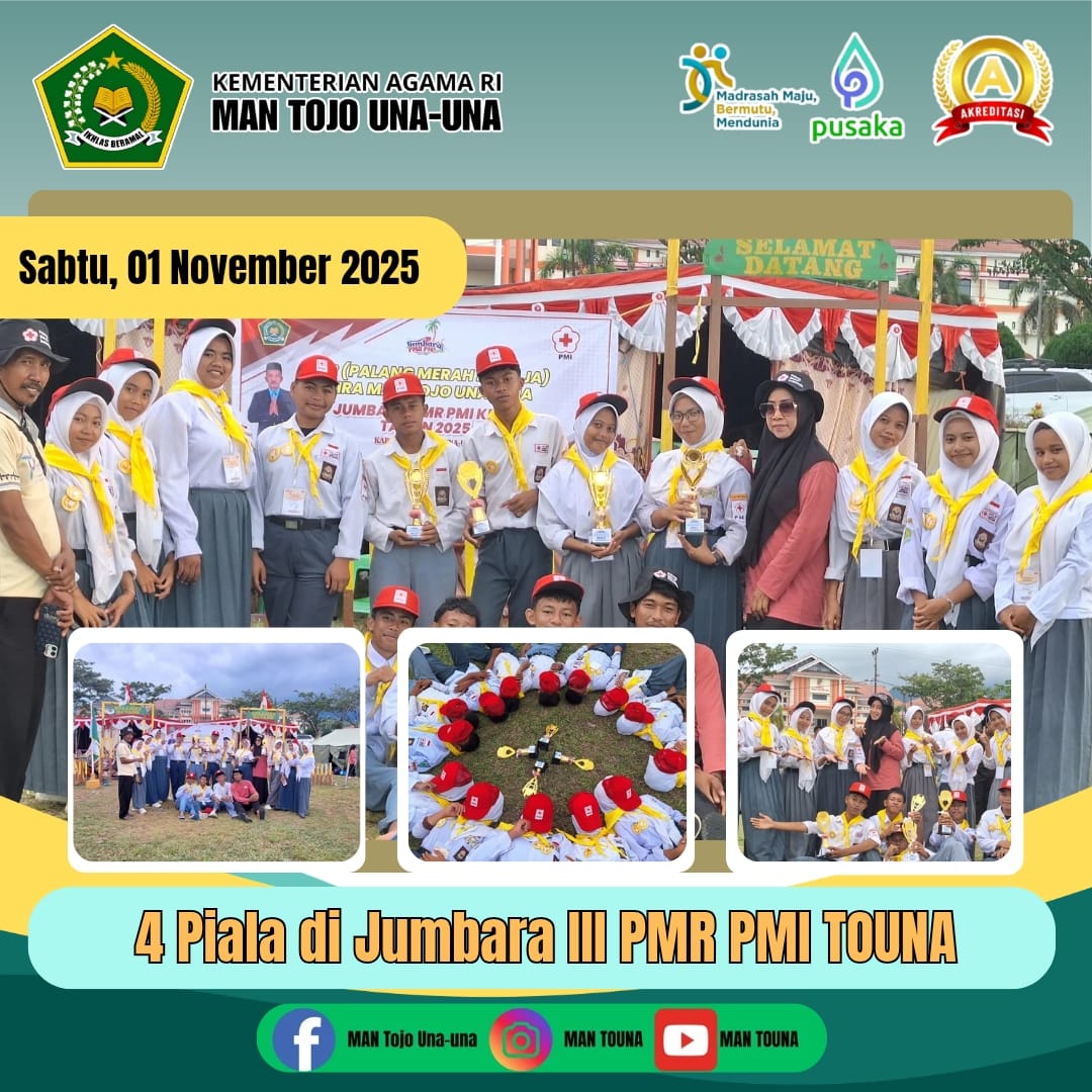 Palang Merah Remaja (PMR) MAN Tojo Una-Una berhasil menorehkan prestasi membanggakan dalam kegiatan Jumpa Bhakti Gembira (Jumbara) III PMI Kabupaten Tojo Una-Una, yang dilaksanakan pada tanggal 30–31 Oktober hingga 1 November 2025.