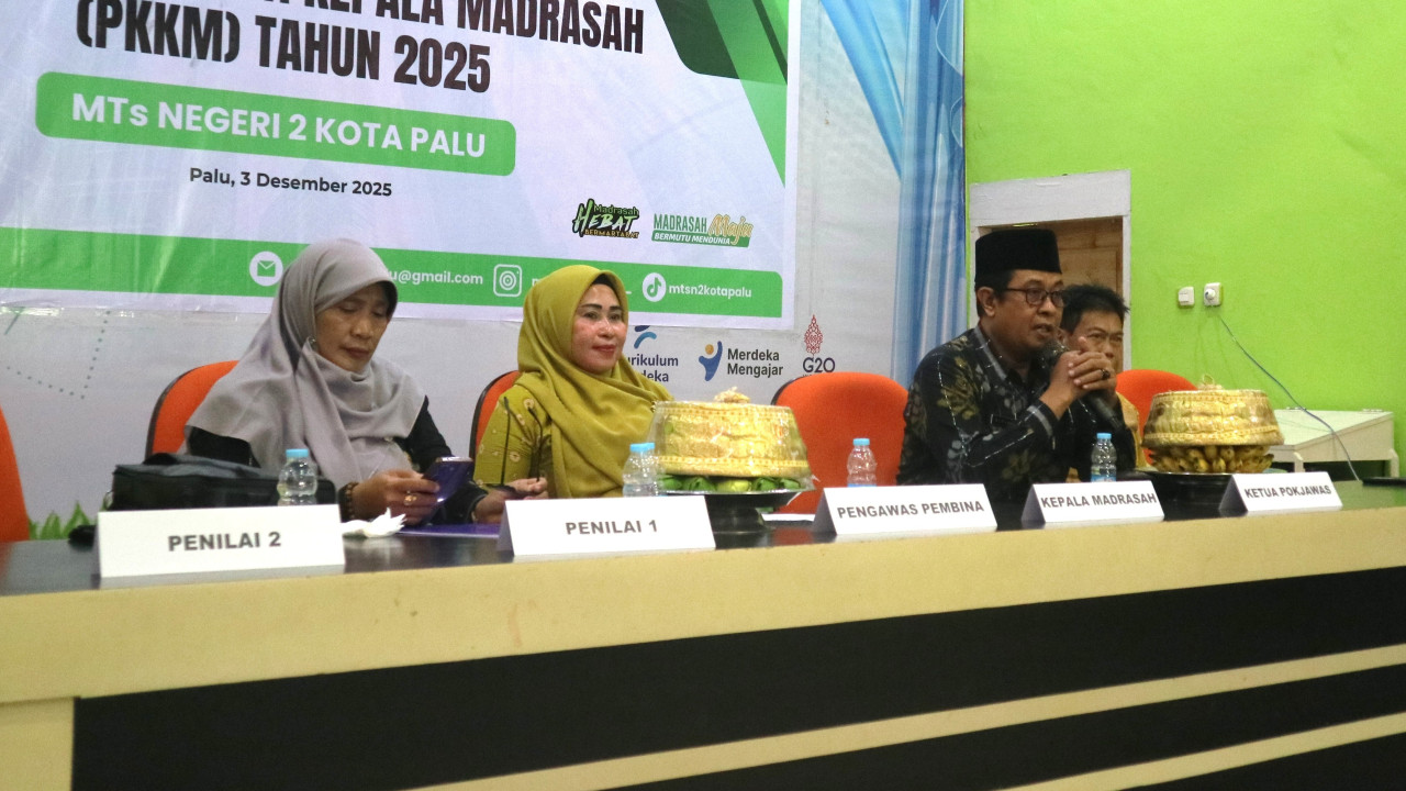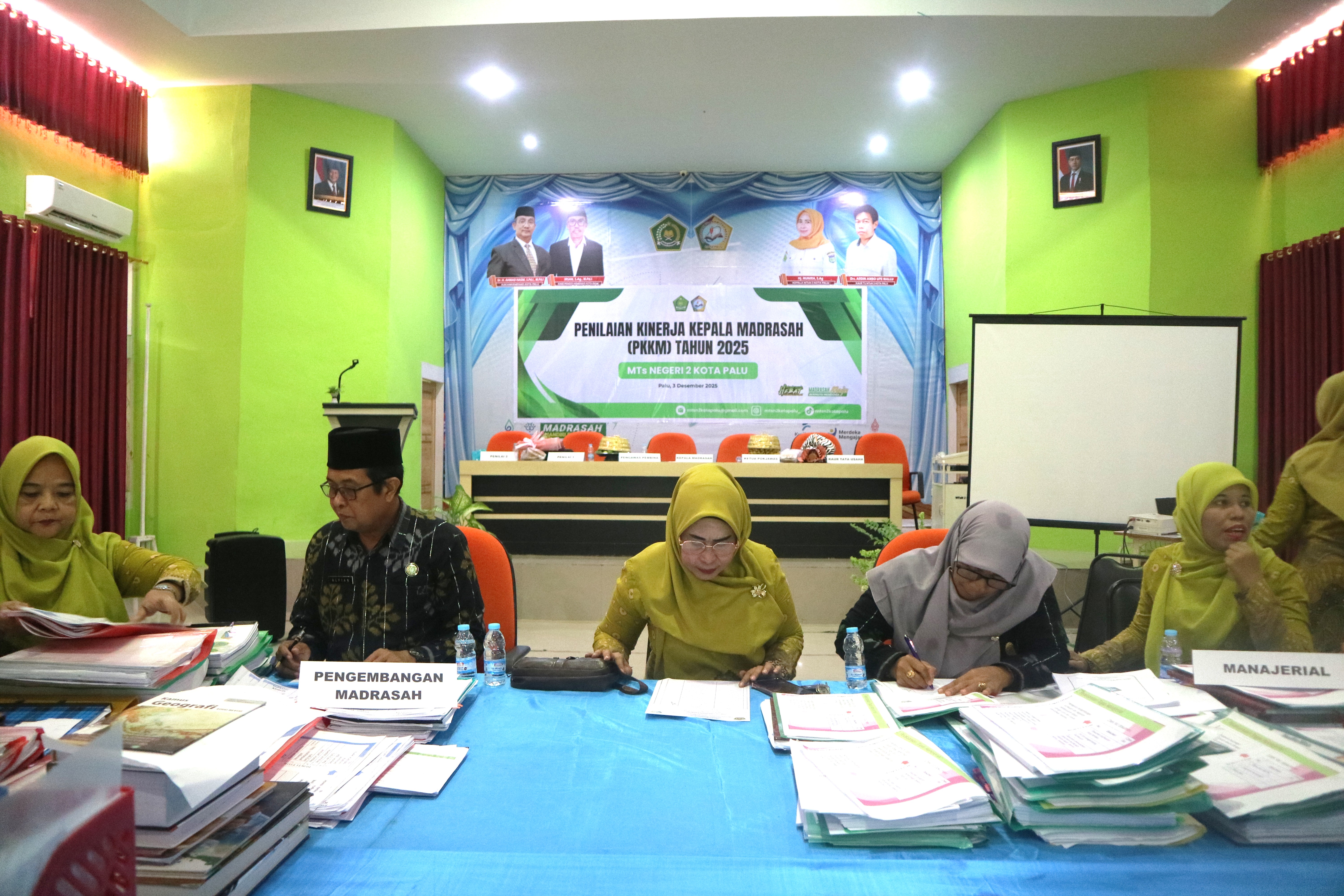 MTs Negeri 2 Kota Palu melaksanakan Penilaian Kinerja Kepala Madrasah (PKKM) Tahun 2025 yang berlangsung di aula utama madrasah pada Rabu (03/12/2025). Kegiatan ini merupakan agenda tahunan yang bertujuan untuk menilai capaian kinerja kepala madrasah dalam melaksanakan tugas pokok dan fungsinya, baik dalam pengembangan lembaga, manajerial, hingga supervisi akademik.
