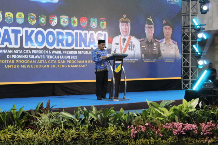 Gubernur Sulawesi Tengah Dr. H. Anwar Hafid, M.Si, hadir sekaligus memberikan sambutan dan membuka secara resmi Rapat Koordinasi dan Evaluasi Program Prioritas Nasional dan RPJMD 2025–2029. Dalam sambutannya, Gubernur menyampaikan bahwa kegiatan ini bertujuan mengevaluasi pelaksanaan berbagai program prioritas di wilayah Sulawesi Tengah. Program Prioritas tersebut yakni makanan bergizi gratis, pemeriksaan kesehatan gratis, koperasi merah putih, sekolah rakyat, serta dukungan swasembada pangan dan pengendalian inflasi. Para bupati dan wali kota, termasuk para pejabat yang mewakili, akan memaparkan capaian Asta Cita di daerah masing-masing.