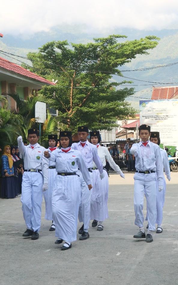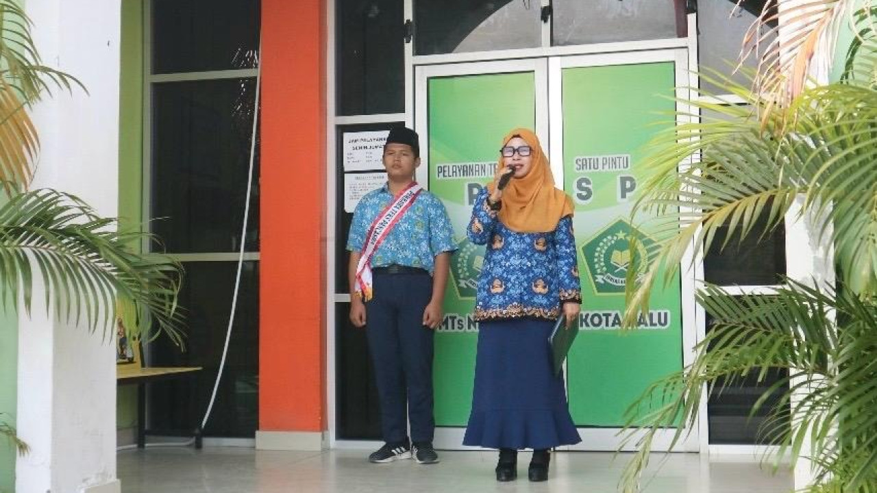 Ket: Foto Pelaksanaan Pembina Upacara Hj. Munira, S.Ag Pada Peringatan Hari Kesaktian Pancasila Bertempat di Halaman MTs Negeri 2 Kota Palu.