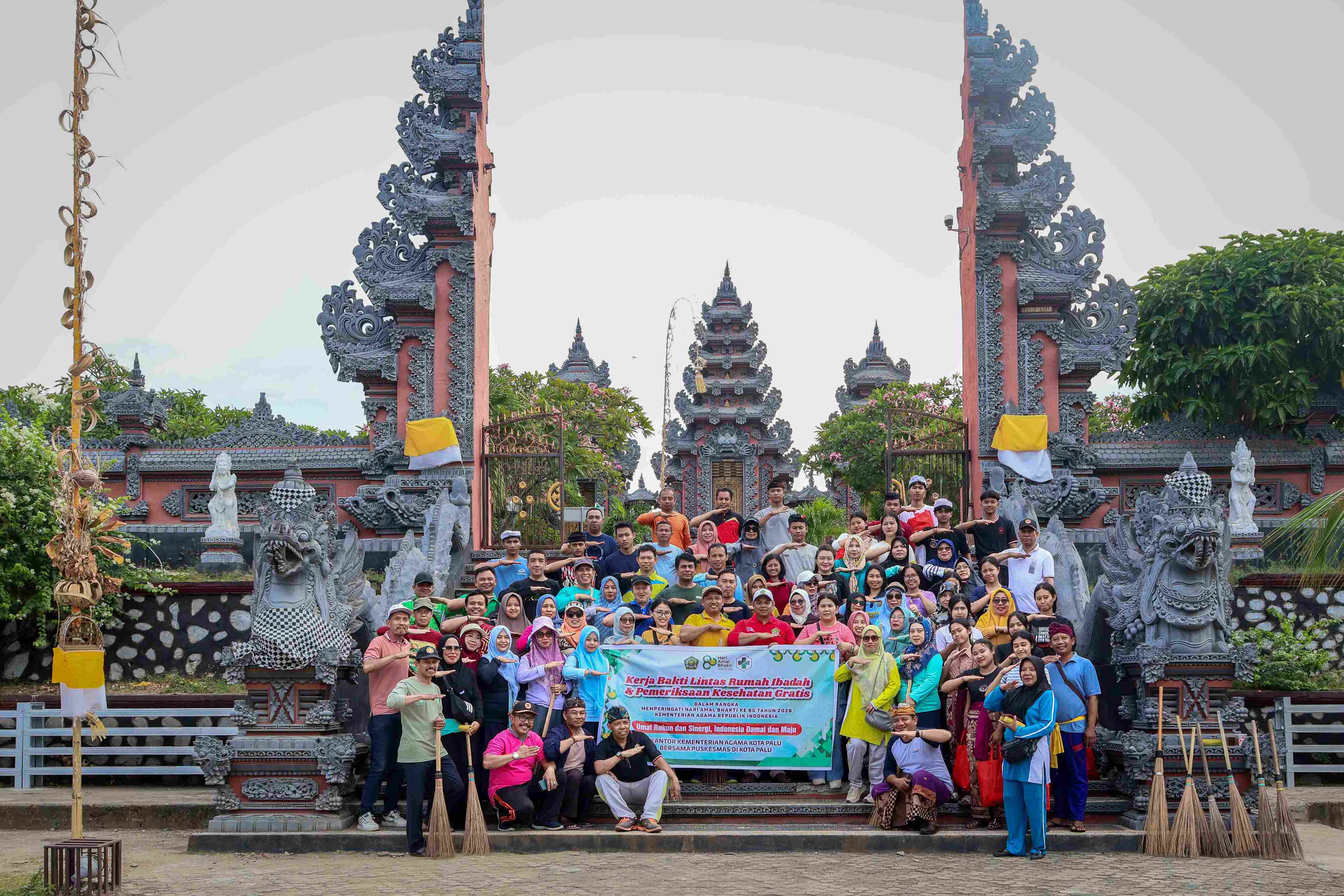 Ket: Segenap jajaran ASN Kemenag Kota Palu, tim medis, dan pengurus Pura Jagatnatha mengabadikan momen kebersamaan usai pelaksanaan bakti sosial. Minggu (7/12/2025)