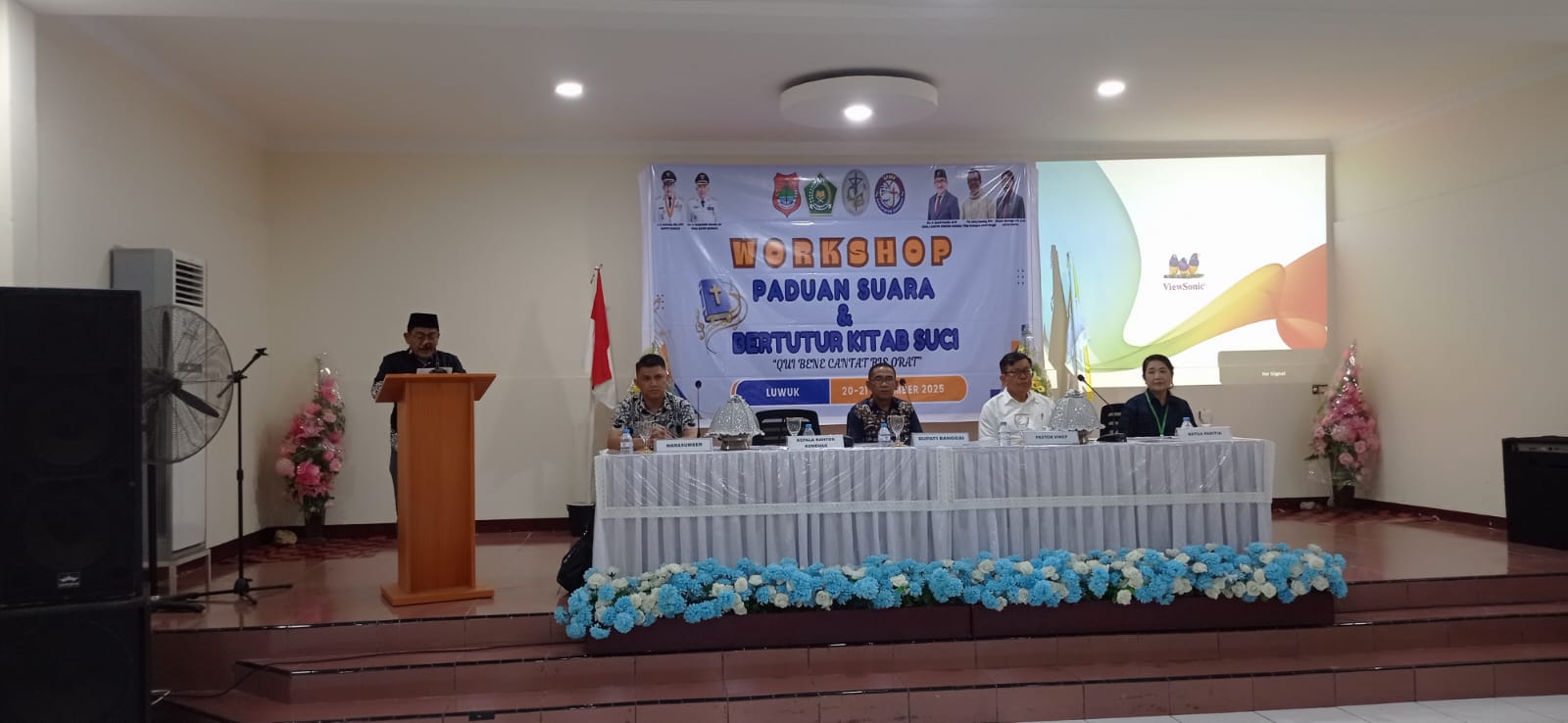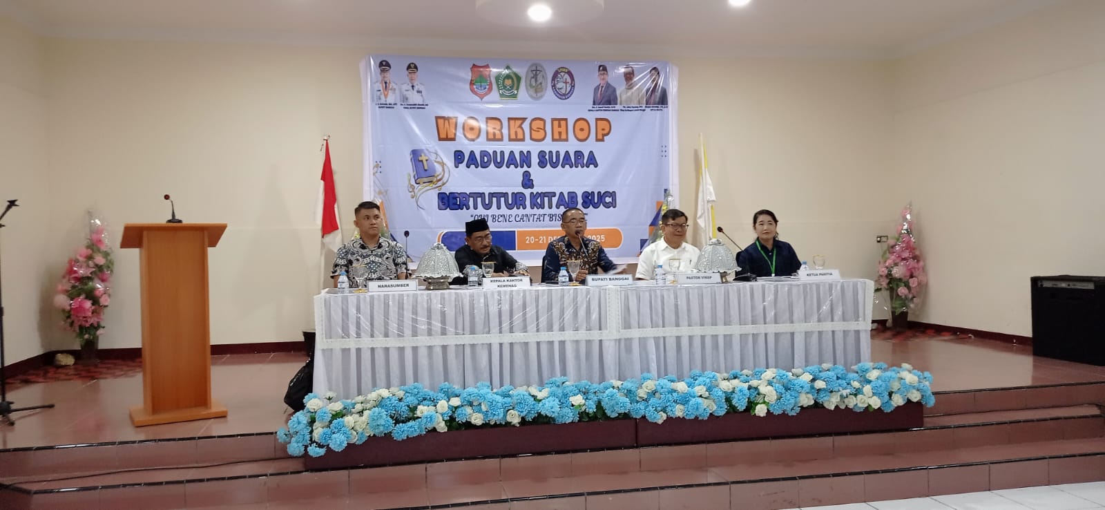 Banggai (Kemenag Sulteng). Kepala Kantor Kementerian Agama Kabupaten Banggai menghadiri kegiatan Workshop Paduan Suara dan Bertutur Kitab Suci yang diselenggarakan oleh Lembaga Pembinaan dan Pengembangan Pesparawi Katolik (LP3D) Kabupaten Banggai. Sabtu (20/12/2025).