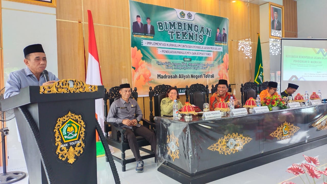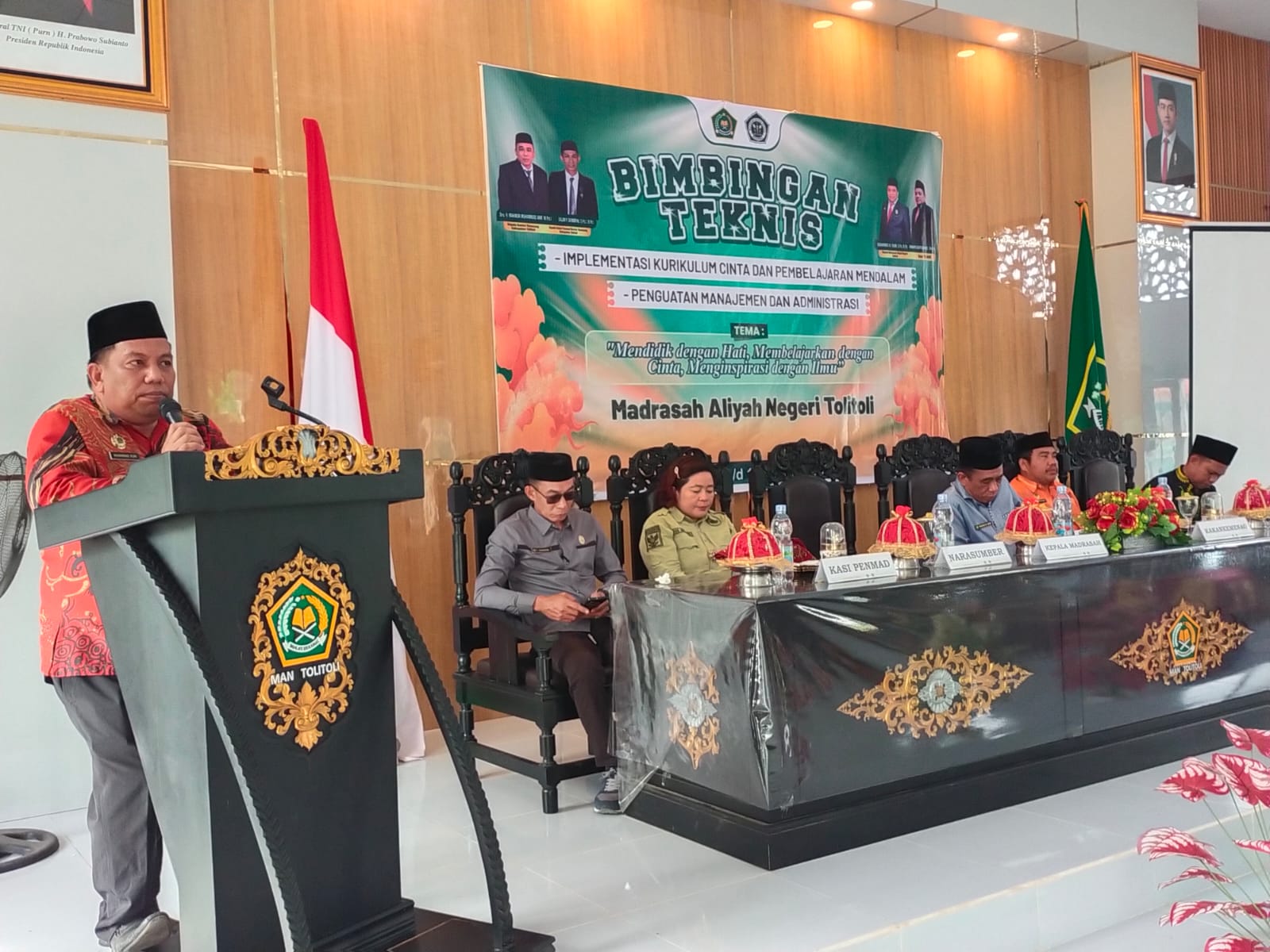 MAN Tolitoli (Kemenag Sulteng) - Madrasah Aliyah Negeri (MAN) Tolitoli memulai langkah awal implementasi Kurikulum Cinta melalui kegiatan Bimbingan Teknis (Bimtek) Implementasi Kurikulum Cinta dan Pembelajaran Mendalam serta Penguatan Manajemen dan Administrasi, yang digelar selama tiga hari mulai 9 hingga 11 Oktober 2025 di Aula MAN Tolitoli.