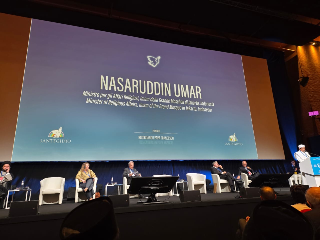 Menag mengaku mendengar kabar Paus Fransiskus wafat beberapa jam setelah menerima undangan dari Sant' Egidio untuk berbicara di forum ini. Saat itu, Menag berharap dapat bertemu Paus Fransiskus di Vatikan pada bulan Oktober, saat menghadiri acara ini.