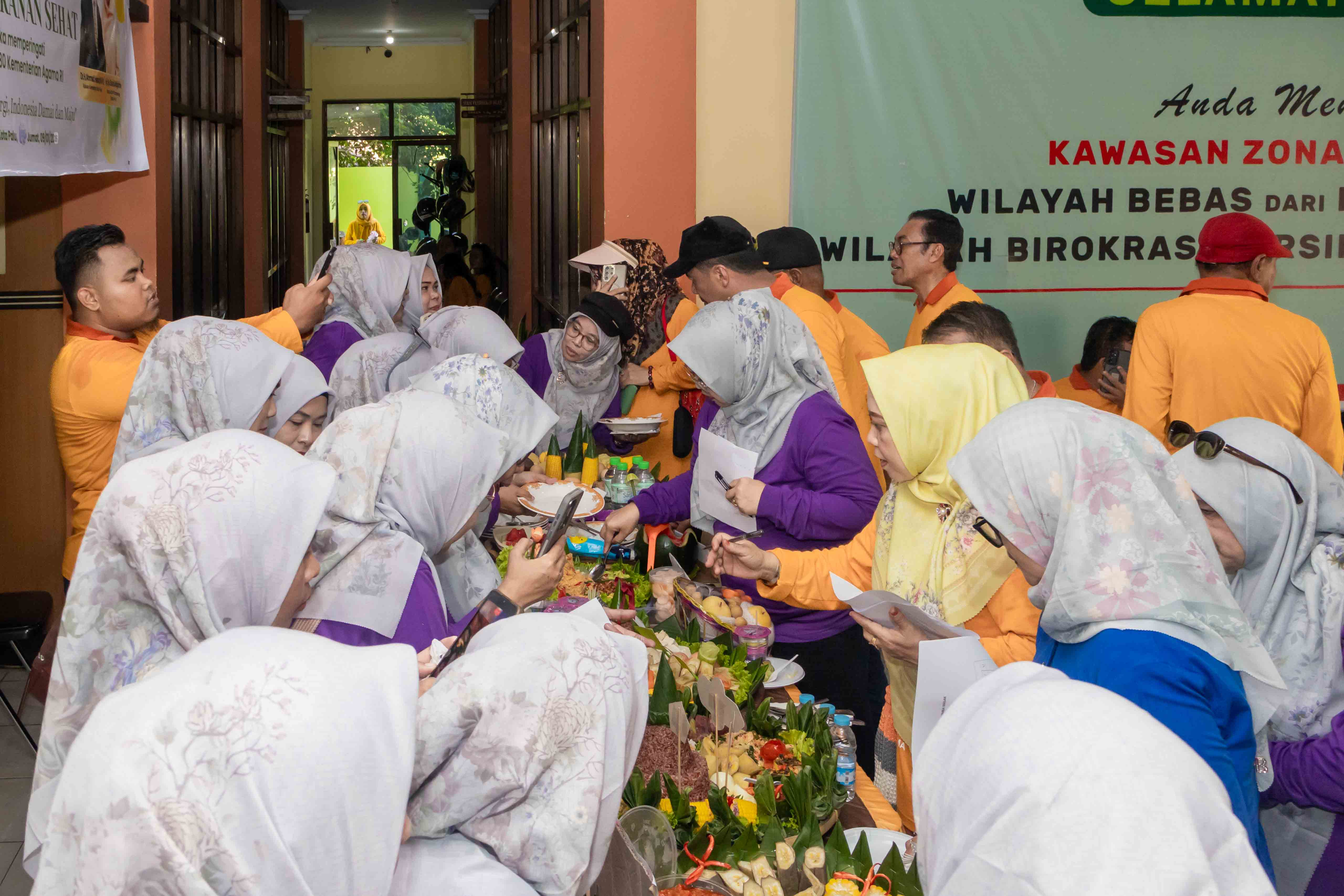 Kemeriahan tidak berakhir di garis finish. Atmosfer kebersamaan dilanjutkan dengan senam sehat massal yang diikuti dengan antusiasme tinggi. Namun, salah satu sorotan utama dalam kegiatan ini adalah peran aktif Dharma Wanita Persatuan (DWP) Kemenag Kota Palu yang menggelar Lomba Makanan Sehat.