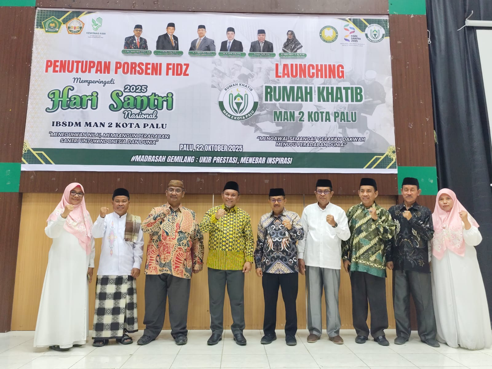 Ket: Plt. Kepala Kanwil Kemenag Sulteng, Muchlis, resmi melaunching Rumah Khatib MAN 2 Kota Palu bertepatan dengan penutupan perayaan Hari Santri MAN 2 Kota Palu pada Rabu, 22/10/2025.