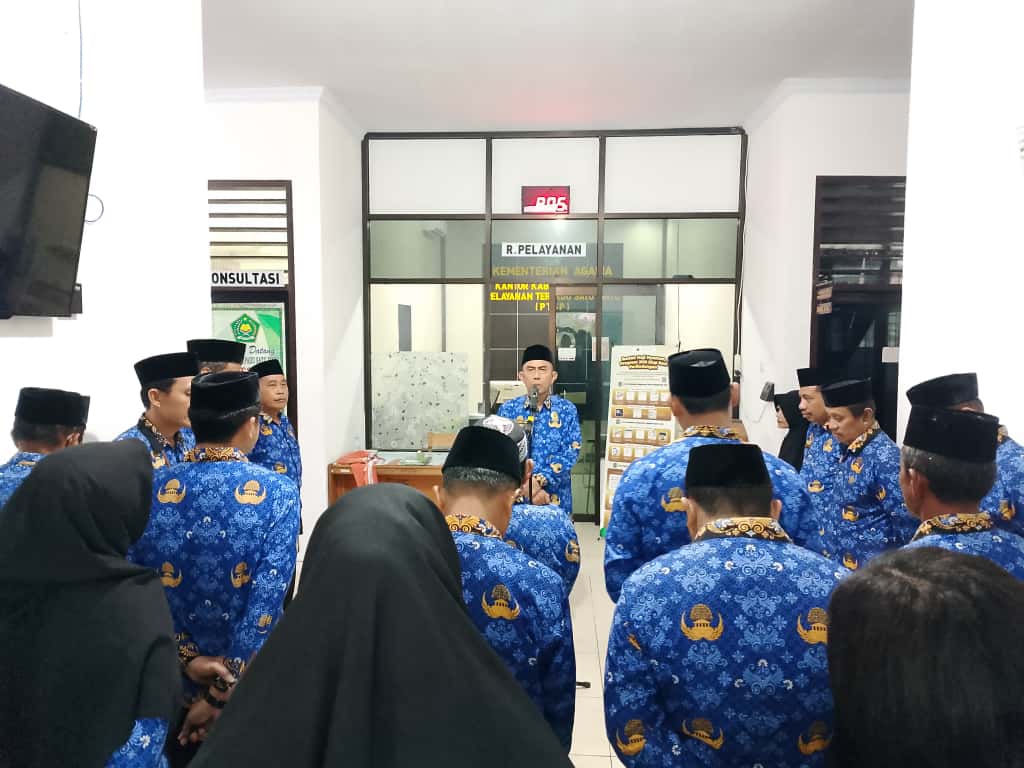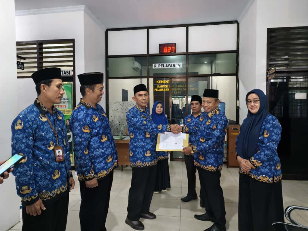 Di akhir apel, dilakukan prosesi penyerahan Surat Keputusan Masa Purnabakti kepada Bapak Ramudin Kadja, yang selama ini menjabat sebagai Kepala Subbagian Tata Usaha. Penyerahan dilakukan langsung oleh Kepala Kantor Kemenag sebagai bentuk penghargaan dan apresiasi atas dedikasi serta pengabdiannya selama bertugas.