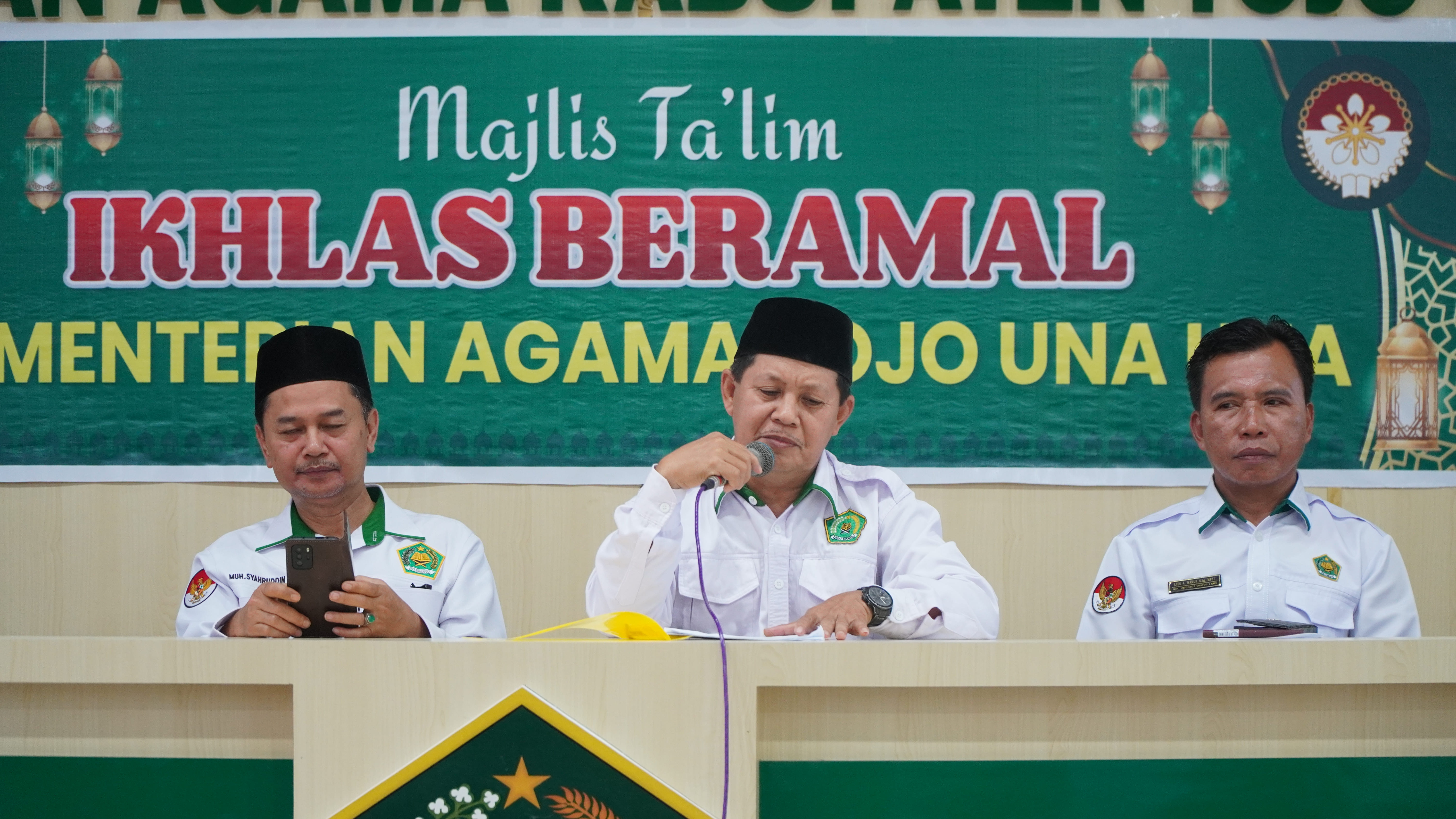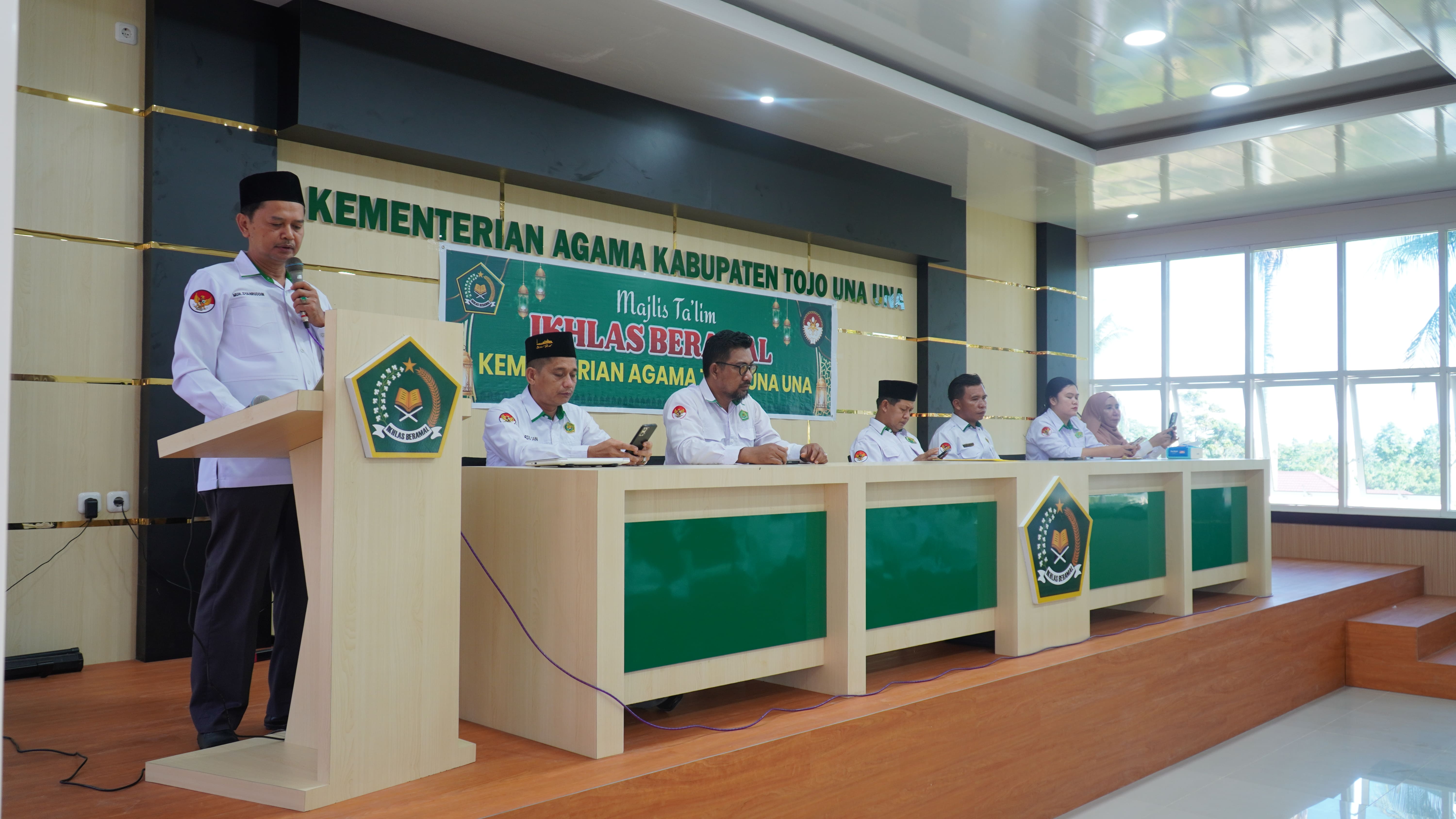 Kegiatan dibuka oleh Kepala Kantor Kementerian Agama Kabupaten Tojo Una-Una, H. Muh. Syahruddin, serta dihadiri oleh para pejabat struktural, kepala seksi, kepala KUA, kepala madrasah, penyuluh agama, dan seluruh ASN di lingkungan Kemenag Tojo Una-Una.
