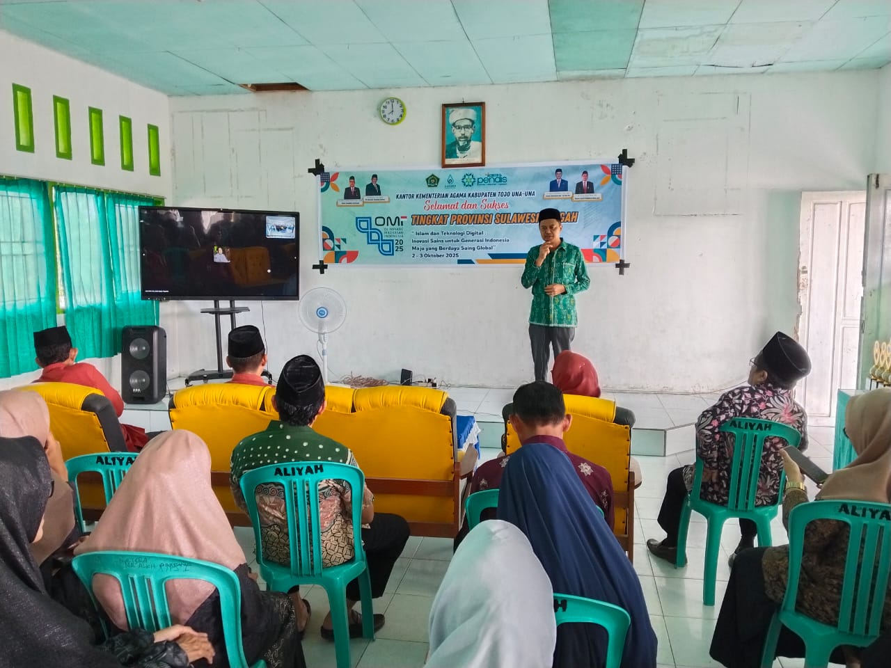 OMI tingkat provinsi berlangsung selama dua hari, 2–3 Oktober 2025. Dari Kabupaten Tojo Una-Una, 33 siswa berhasil melaju ke tingkat provinsi setelah melalui seleksi ketat di tingkat kabupaten yang diikuti 246 peserta. Mereka terdiri dari siswa MI, MTs, dan MA, dan akan melaksanakan ujian secara daring dari daerah masing-masing dengan penuh antusias dan persiapan matang.
